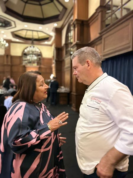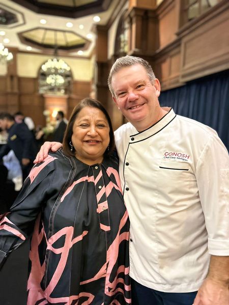 An evening with Gary Mehigan… ex judge of MasterChef Australia. This was an opportunity not to be missed and I am so grateful to my daughter Aradhana for thinking of me when she heard about it. I was literally fangirling as soon as she told me about it even though she had got the numbers slightly wrong… she said it was a dinner for 25 people when actually there were more like 150 people!!! However Gary very graciously went around to each table, answered questions and had photo upon photo taken all with a big smile on his face. There were also quite a number of questions and answers and I felt I was back in school when I put my hand up to ask something. However, my daughters were delighted that I never got a chance to speak as they were scared of what I might ask!!! This event was organised by a company called Conosh who specialise in these kind of events. To be honest the food was nothing great… I was horrified when I saw the pass around starters… there was literally a papri chaat, a kind of vada pao and an alu tikki. They were all kind of disguised with fancy names but basically that’s what they were!!! More about the rest of the meal tomorrow… I now need my beauty sleep!!!