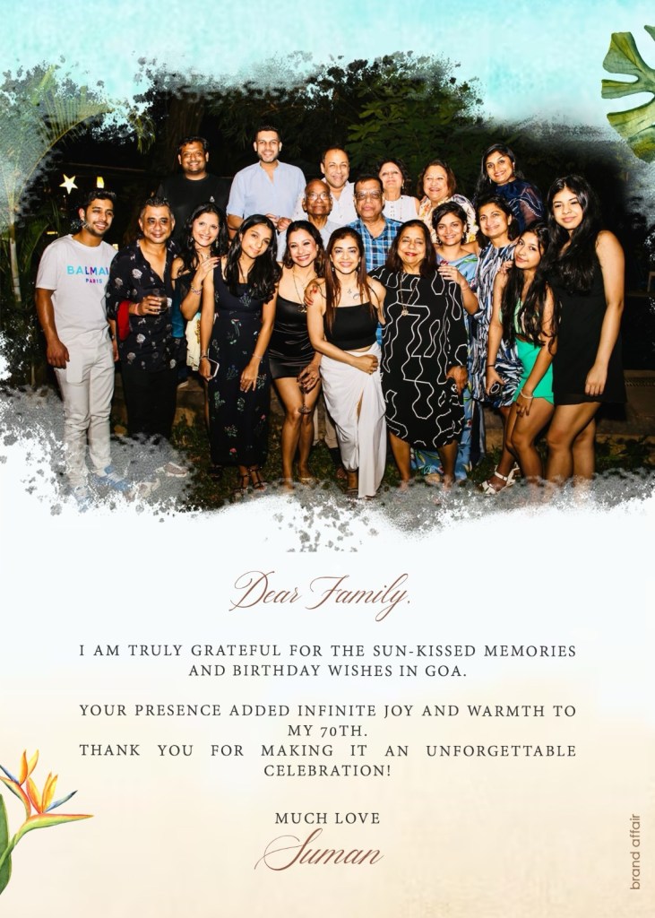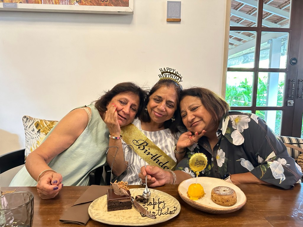 So the New Year started with a bang as it was my sister Suman’s landmark birthday… her big seven oh 70th!! She was extremely keen on taking our whole family away to Goa on a holiday and I think she started planning it about a year in advance. Now getting everyone together is no feat considering that she lives in Raigarh, her son is in Singapore, her daughter is in Kolkata, one granddaughter is working in New York, one grandson is in Germany, one granddaughter is in Missouri at boarding school, my eldest sister lives in Manchester, her son lives in Kuala Lumpur and finally me and my clan are all in Kolkata!!! So you can imagine the mammoth task Suman undertook and the best part is that she achieved it. She booked 3 lovely villas in the Vagator area for 3 nights and we partied from morning till night. We ate and drank to our hearts desire and laughed and laughed till we cried. Often… getting a large group of relatives together for any period is asking for trouble as someone or the other always feels hard done by and feelings are hurt. Here fortunately we all got on famously and I can honestly say that we had a fabulous time. Credit must go to Suman who was determined to organise this and wouldn’t let anything trouble her or put her off. We partied so hard that by the last night we were just too exhausted to even think of going out and ended up relaxing in our kaftans and getting takeaway!!! Now I can understand we ‘budhas’ feeling this but for the children to be done too is saying something!! The best part was that we got to interact with all the youngsters so much and they opened up with us and we were playing drinking games and trading awful jokes… they seemed so funny at that time!!! So thank you Suman for all the wonderful memories you left us with and the beautiful family photograph and frame you gifted us!!!