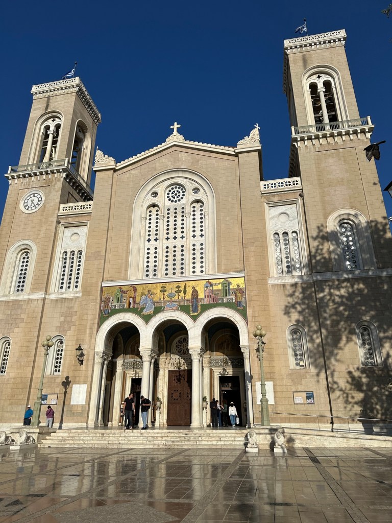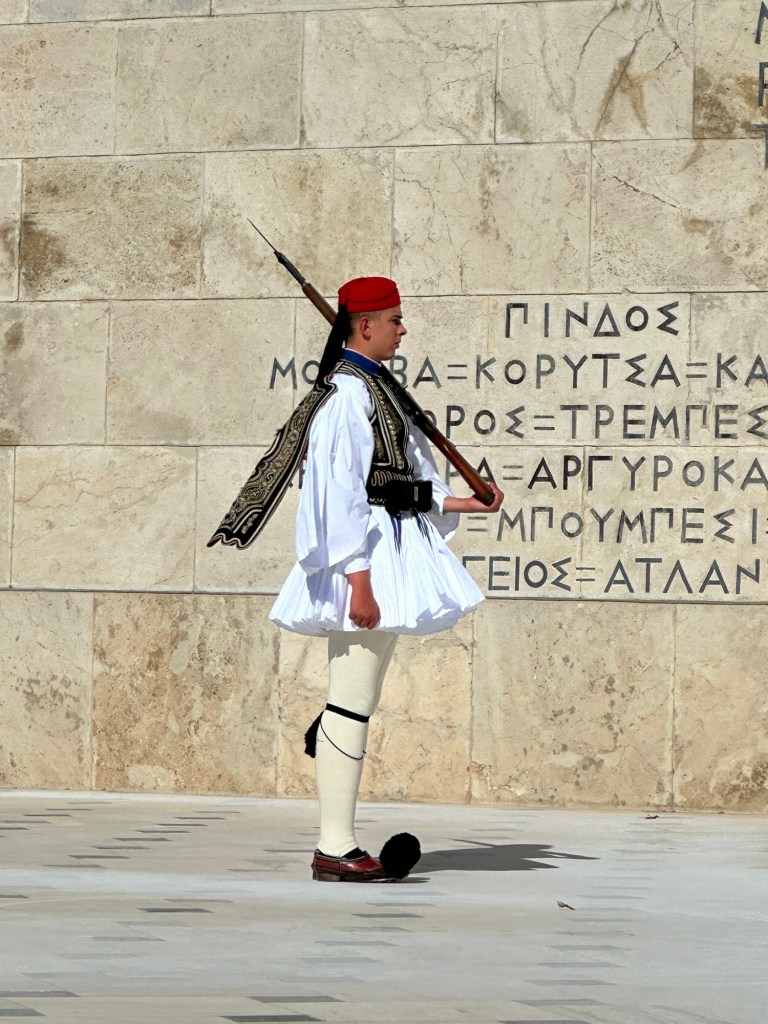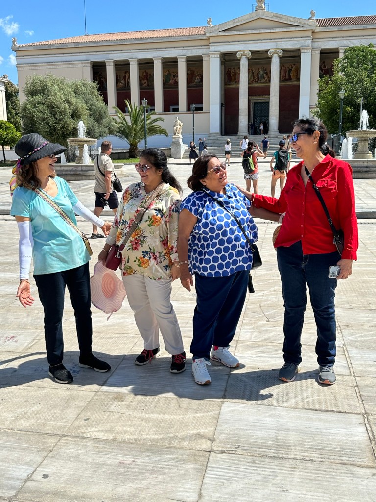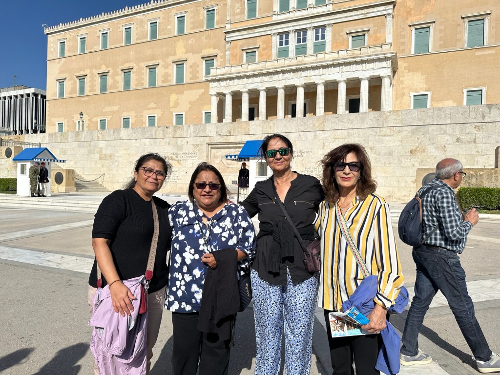 So.. the party started in the lounge at Kolkata airport and it is still continuing. We reached Athens deadbeat but as soon as we had unpacked and freshened up we were raring to go… we didn’t want to waste one minute. Our hotel was the Electra Palace Hotel and it was very near the Plaka area which is always buzzing. There are lots of lovely restaurants and cafés and a whole lot of shops selling very touristy souvenirs which we gave a wide berth to. We visited the Athens Parliament where we saw the famous changing of the guards which reminded me of the performance at our own Wagah Border but here it was much smaller with less fanfare. We also saw a couple of churches and the Metropolitan Cathedral of Athens. By now we were flagging so had a lovely dinner at a Greek restaurant and hit the sack.