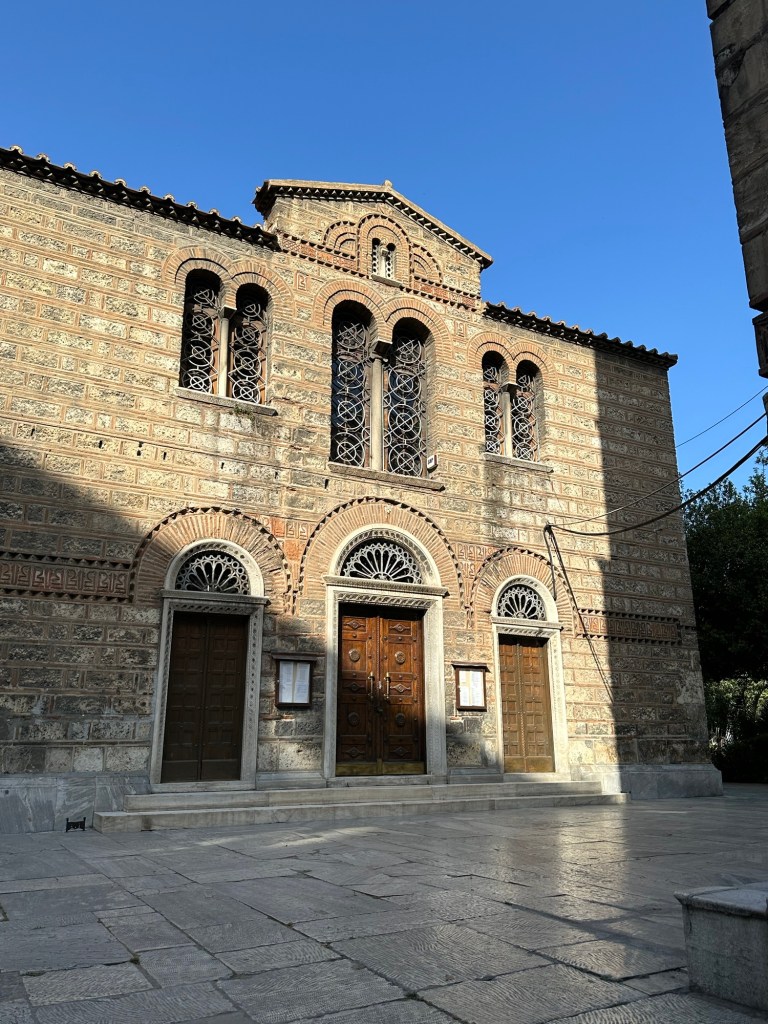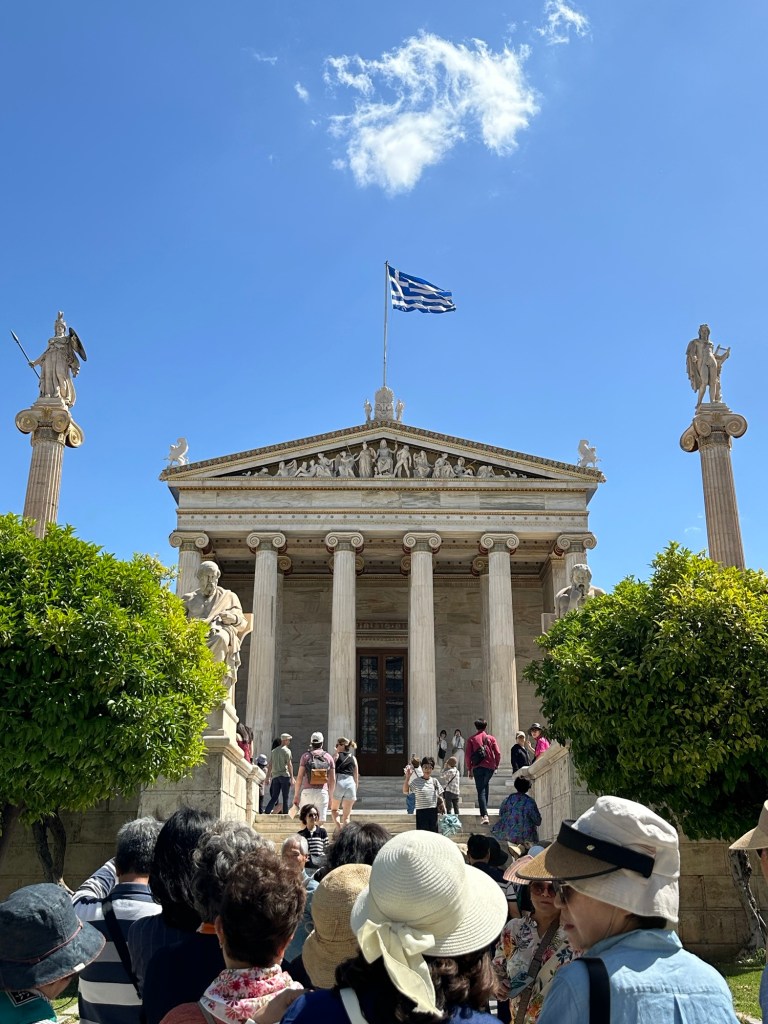 We then visited several Neo classical buildings of the 19 th century. One was the Academy with the statue of Plato and Socrates sitting at the entrance and Athena depicted as a warrior and Apollo the God of music, harmony and light who were standing. Next to this is the