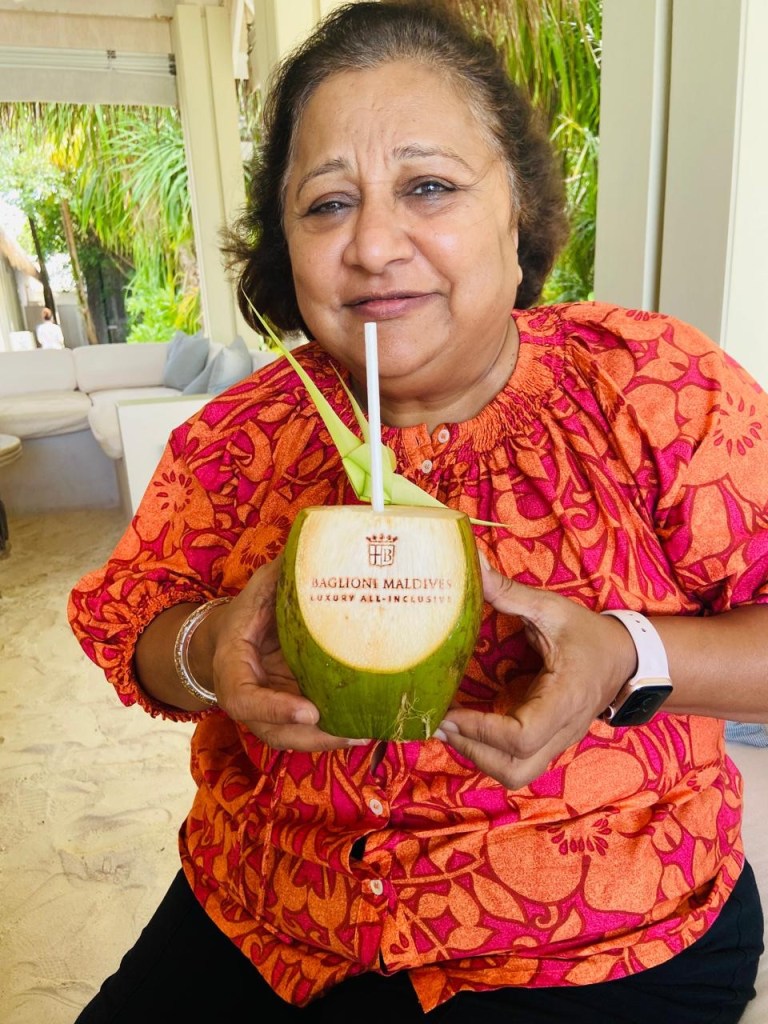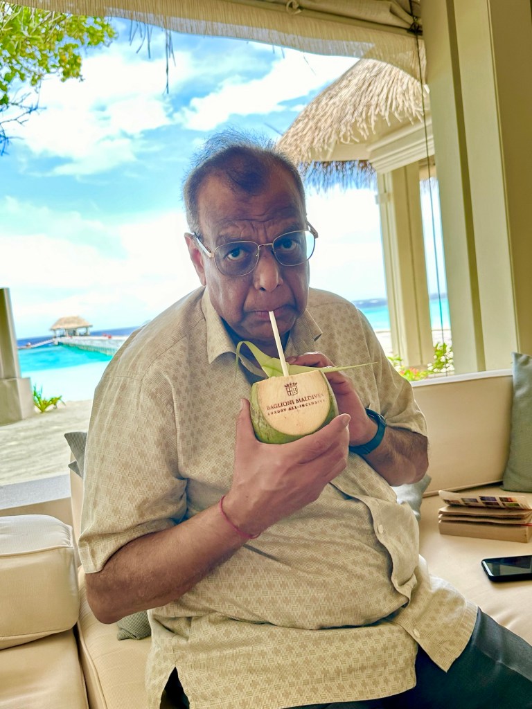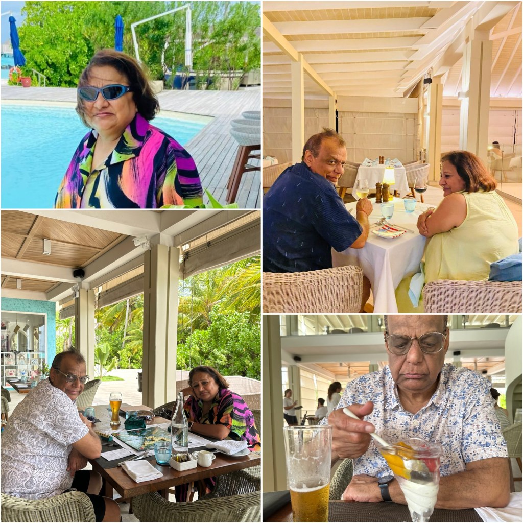 Our days are pretty fixed on these trips. I normally get up early and go for a morning walk either on the beach or the paths and I explore the whole island. You never know what you are going to see as some areas are beautifully manicured whereas others are left in their natural condition. The islands usually have mangroves in the centre and the villas are all made on the outer circle of these trees on the beaches. You have a choice of villas….either an over water villa where the villa is literally built on stilts over the water  or then beach villas where the villa leads out to the beach. We prefer staying in these beach villas as Vinay is always a bit scared that a shark might just jump out of the water…he has obviously seen the film “Jaws” too much. In fact,last night there was a torrential rain storm and we were speaking to a couple who were staying in the water villa and they said it was literally shaking and some guests even went running to the reception as they thought there was a tsunami coming!!!