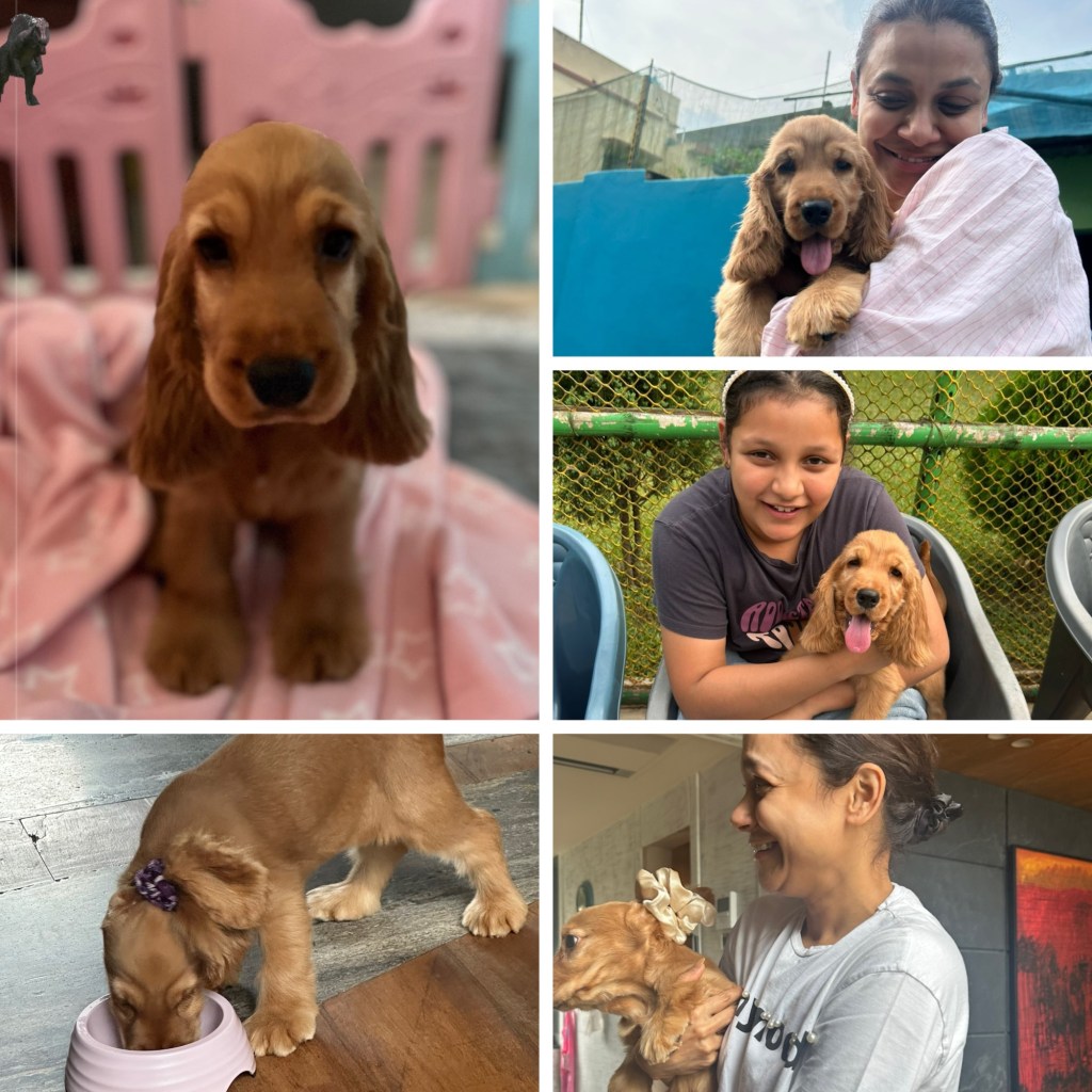 So now, Alia is feeling really left out as she has been going on and on about getting a dog for the longest. She has really inherited her mother’s genes also so she used to come to Alipore straight from school and very grudgingly leave when it was time for squash practice. Here again the family finally relented… the things we do for our grandchildren!! And so welcome to the family … Little Millie who is a golden Cocker Spaniel. She is just gorgeous and soft and cuddly. Both Neha and Rashi are totally sleep deprived and exhausted from trying to train these babies and the only conversation I hear is