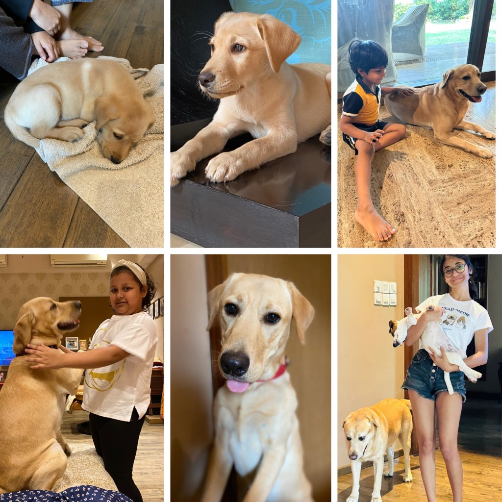 Siya has totally gone on her Bhua. She is obsessed about dogs, cats and in fact all animals. Both Siya and Vivaan would go on and on about getting a dog. They convinced their father and the next big job was to convince their Dadu. For a week they sent WhatsApp messages to him daily with “ please” written 100 times or the folded hand emoji 100 times. They were relentless and it finally paid off and he agreed. Before you could blink they came home with a little golden Labrador who was small and cute but he has now grown big and handsome. It was such a coincidence when they named him Lex, short for Lexington as this was the name of my friends dog who Rashi used to go and play with. Luckily Neha , who never really liked dogs earlier, fell in love with him the day he came and that was so important as she is the one looking after him all day. He is such a clever boy… he follows Neha around all day but waits for Vivek to come home and then totally changes his colours and sticks to him. The fact that Vivek gives him a treat when he comes home from the office obviously helps! Then at night he just wants Siya and refuses to sleep anywhere else. She even lets him sleep on her beloved Toyu, a doll she’s had since birth which is actually ready to be binned but then Neha has to restuff her and patch her up. Lex is extremely sensitive and caring as all Labs are known to be. When I had a surgery he used to come down to my room and sit at my feet in the sitting room and when I used to go for a walk in the corridor he would very patiently walk beside me the whole time. Similarly when Vivek broke his ankle he would lie next to him on the bed never touching the injured area and watch over hm all day. He instantly knows when people don’t like him… he gives them a very disdainful look and turns away before they can shoo him away. It’s like “ you don’t like me… well mister I don’t like you first!!!”