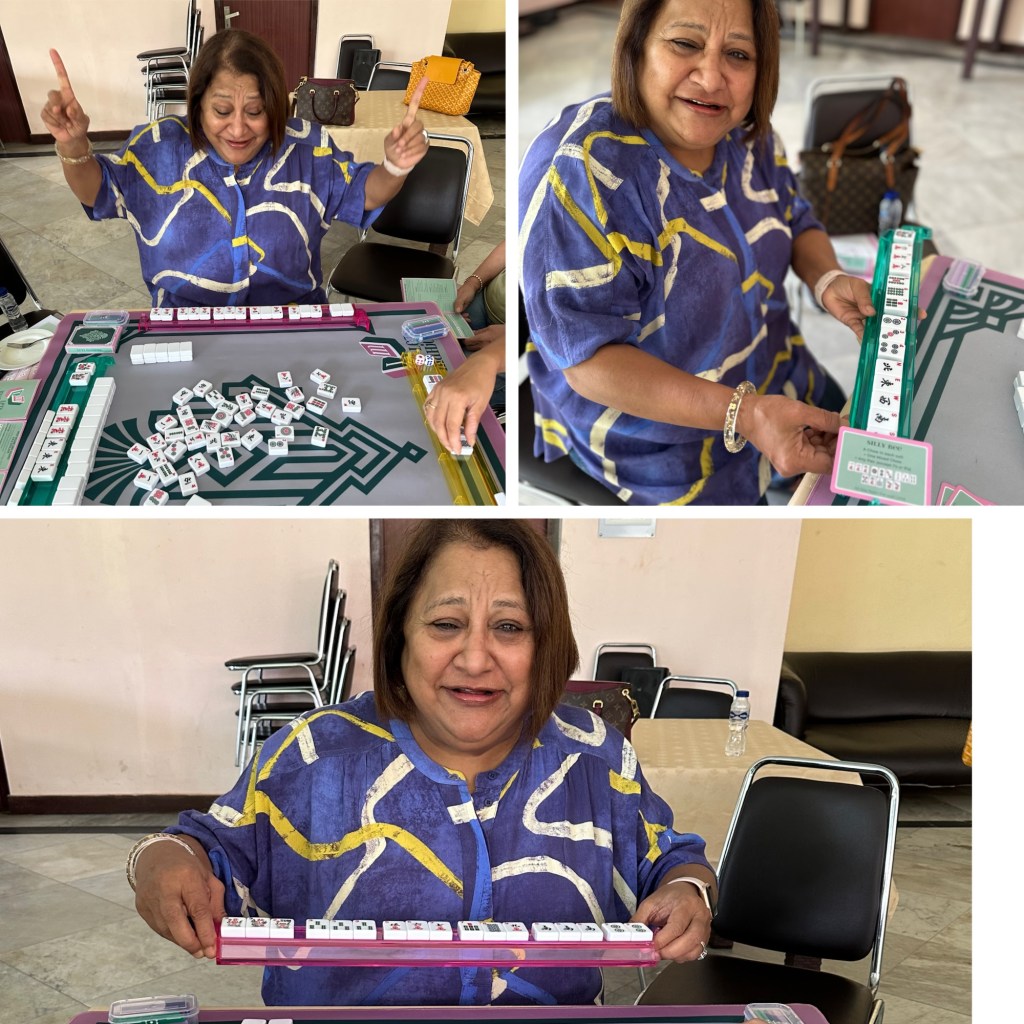 I thoroughly enjoyed my classes as I have managed to meet a whole new group of people who I now consider my friends… and even though many are much younger than me we had a blast from day one. I have now become the local ‘agony aunt’ and disperse advice as though I’m an expert!! The nicest thing is that they enjoy playing with we “fuddy duddies “ and don’t make excuses to avoid us! We now meet up a couple of times a week to play and try to hone up our skills with steely determination. Our ‘teachers’ keep encouraging us to practice and send us pictures of winning hands and make us figure out what the score would be. That is one thing I have still not mastered but I am getting the gist of it now and between us we manage to figure out the answer.